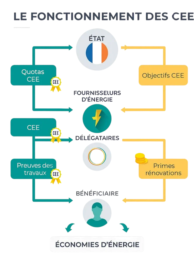 Le programme des Certificats d’Économies d’Énergie (CEE) est une initiative soutenue par le gouvernement, conçue pour promouvoir l’efficacité énergétique et soutenir les projets de rénovation.